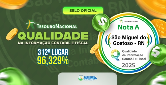 O município de São Miguel do Gostoso celebra um marco histórico em sua administração pública. Nesta segunda-feira (15), a Secretaria do Tesouro Nacional (STN), órgão do Ministério da Fazenda, concedeu ao município a NOTA A no Indicador da Qualidade da Informação Contábil e Fiscal (ICF) e, como reconhecimento, o Selo "Qualidade da Informação Contábil e Fiscal - 2025".