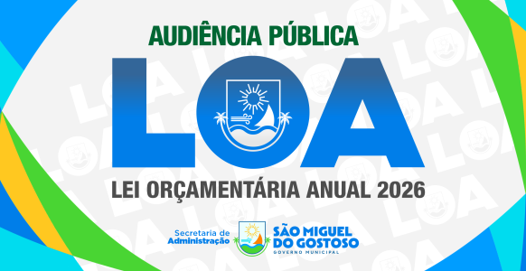 A Prefeitura Municipal de São Miguel do Gostoso, por meio da Secretaria de Administração, convida toda a população, autoridades e representantes da sociedade civil para participarem da Audiência Pública relativa ao Projeto de Elaboração da Lei Orçamentária Anual (LOA) 2026.